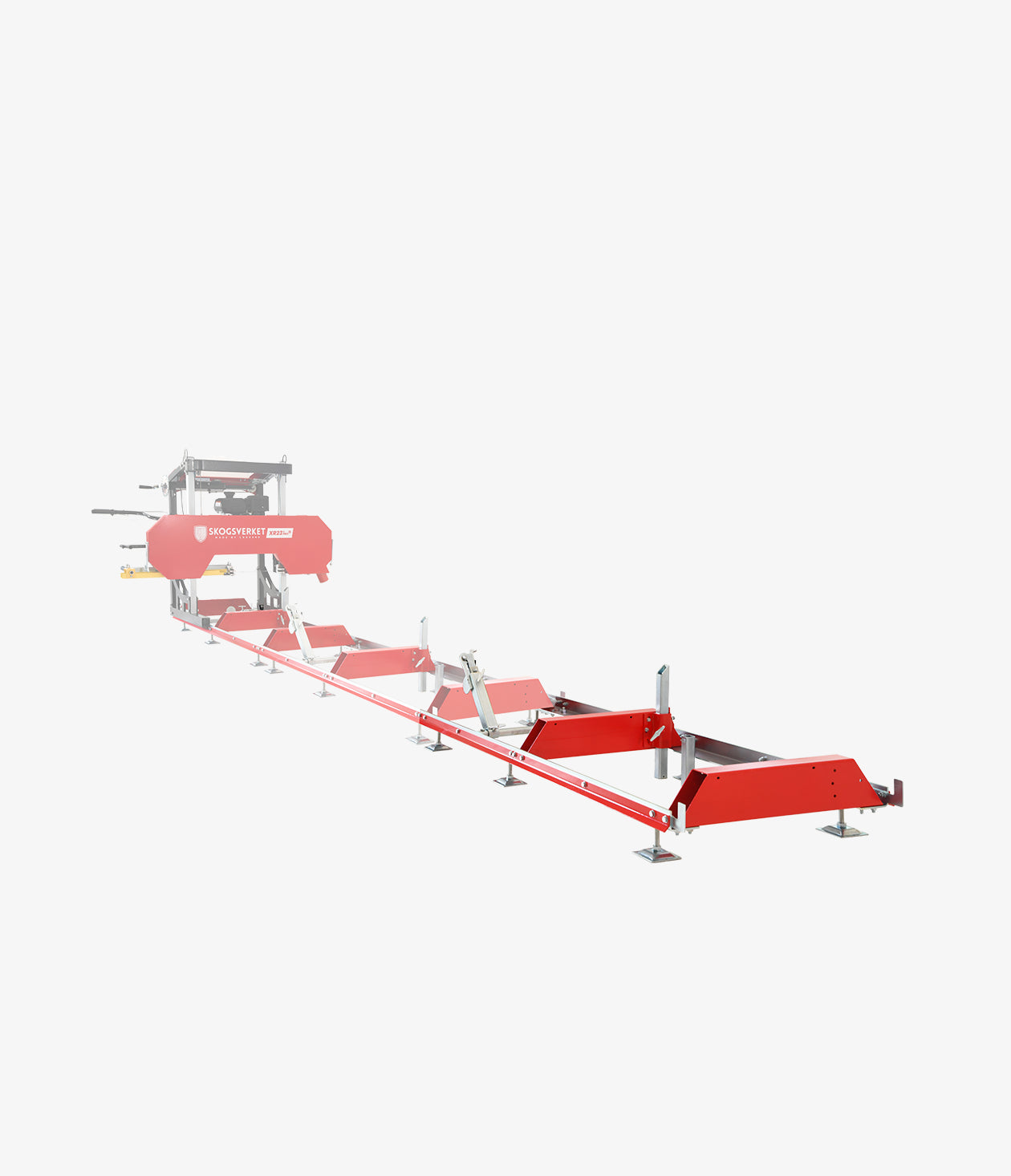 Stationär förlängning för Bandsågverk SILVALOG GT34 och Skogsverket XR23, XR32 och XR40. Modulen förlänger sågbänken med 195 cm och gör det möjligt att hantera längre stockar vid sågning.