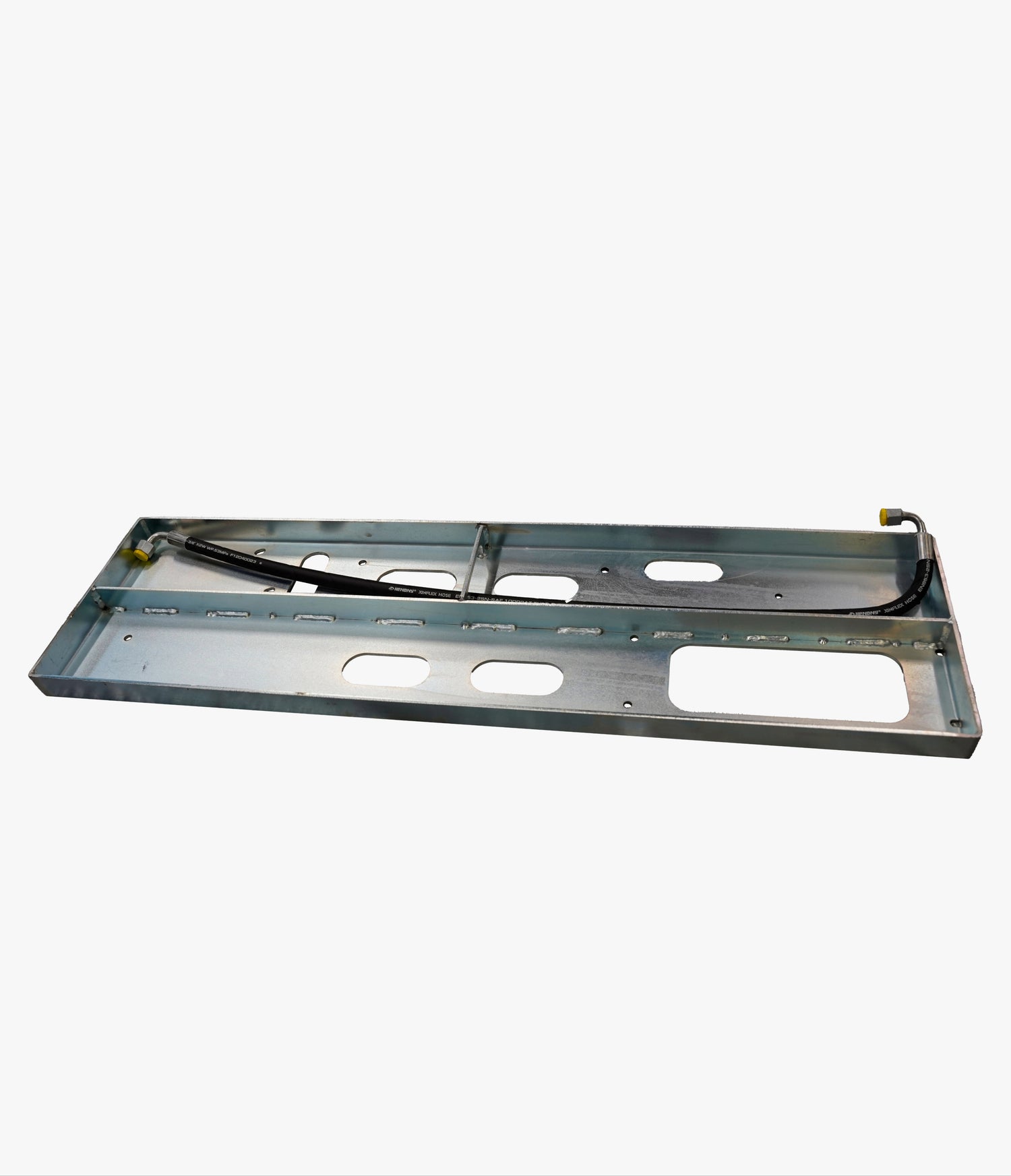 Motorplatta för Timmervagn ELM1500 används som fäste för motor och hydraulpaket. Plattan bultas fast i ramen och är avsedd för körning bakom traktor.