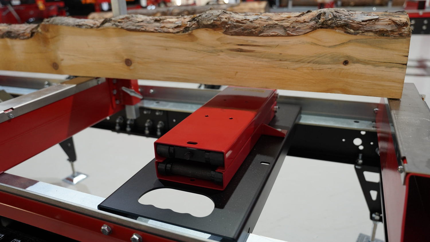 Topplyft till bandsågverk används för att höja och sänka stockar vid sågning. Genom att justera stockens toppände säkerställs rätt vinkel och precision för ett jämnt snitt.