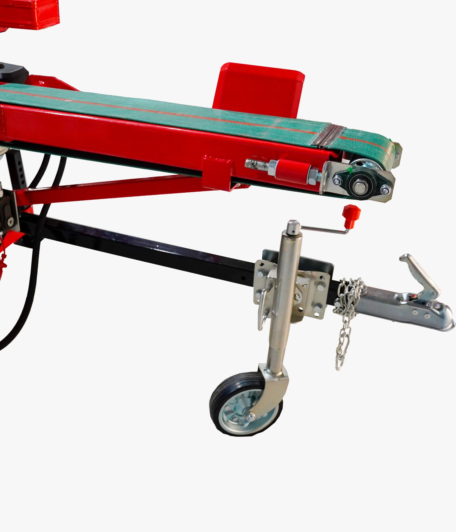 Inmatningsband till Vedkombi 12T G och E gör arbetet enklare och mer effektivt. Bandet eliminerar behovet av manuell hantering av stockar och ger en jämn och snabb inmatning till vedprocessorn.